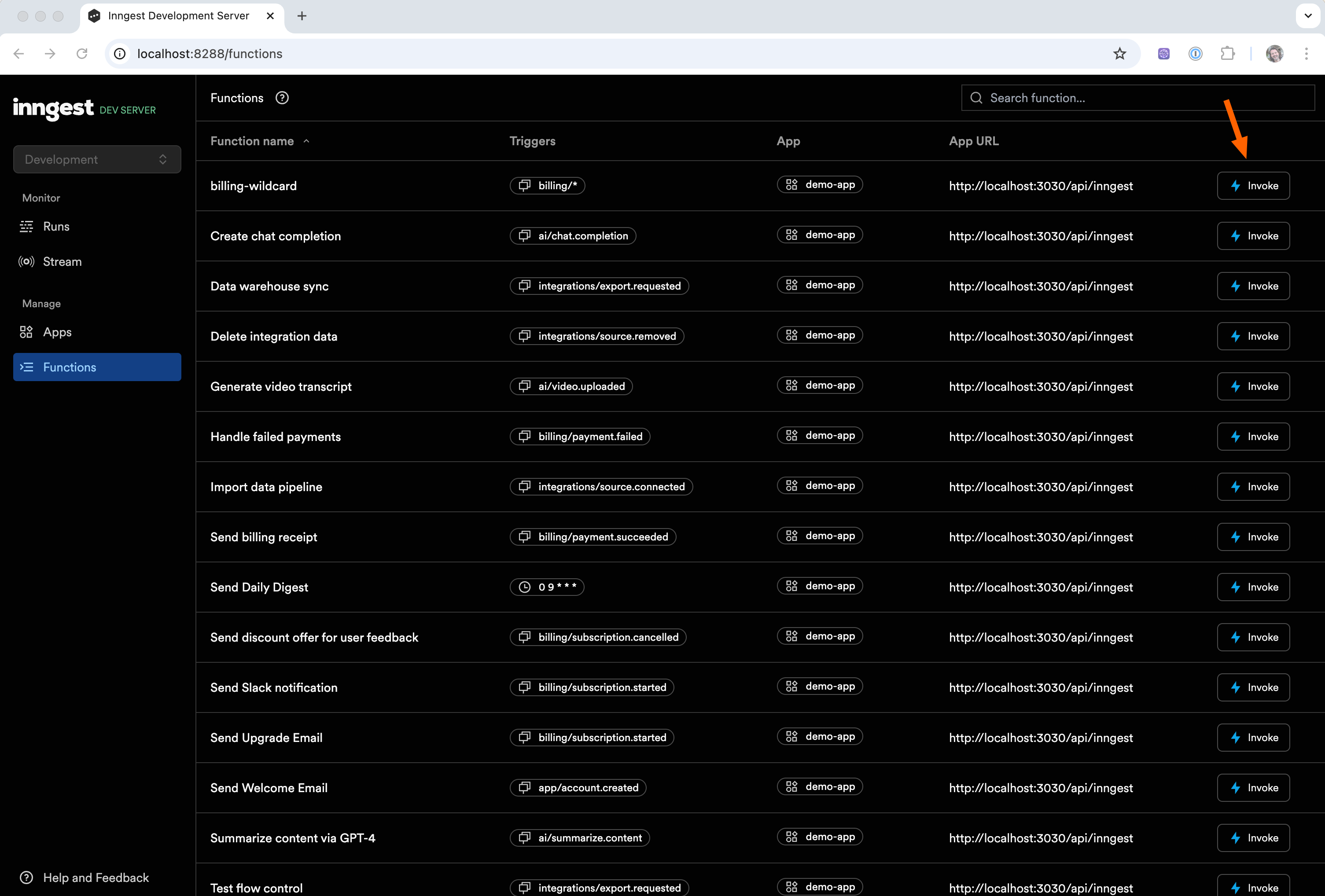 Developing with Inngest looks as it follows: